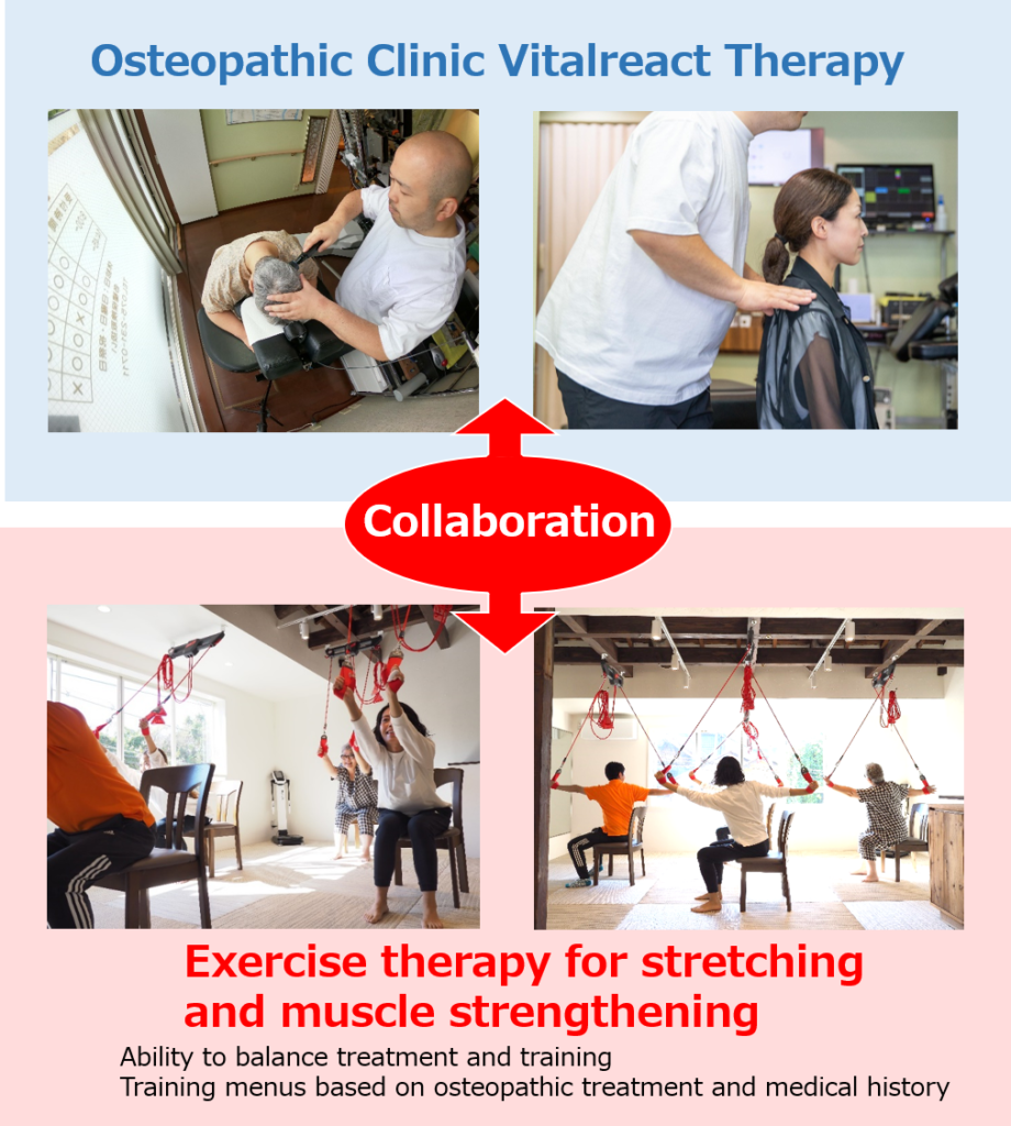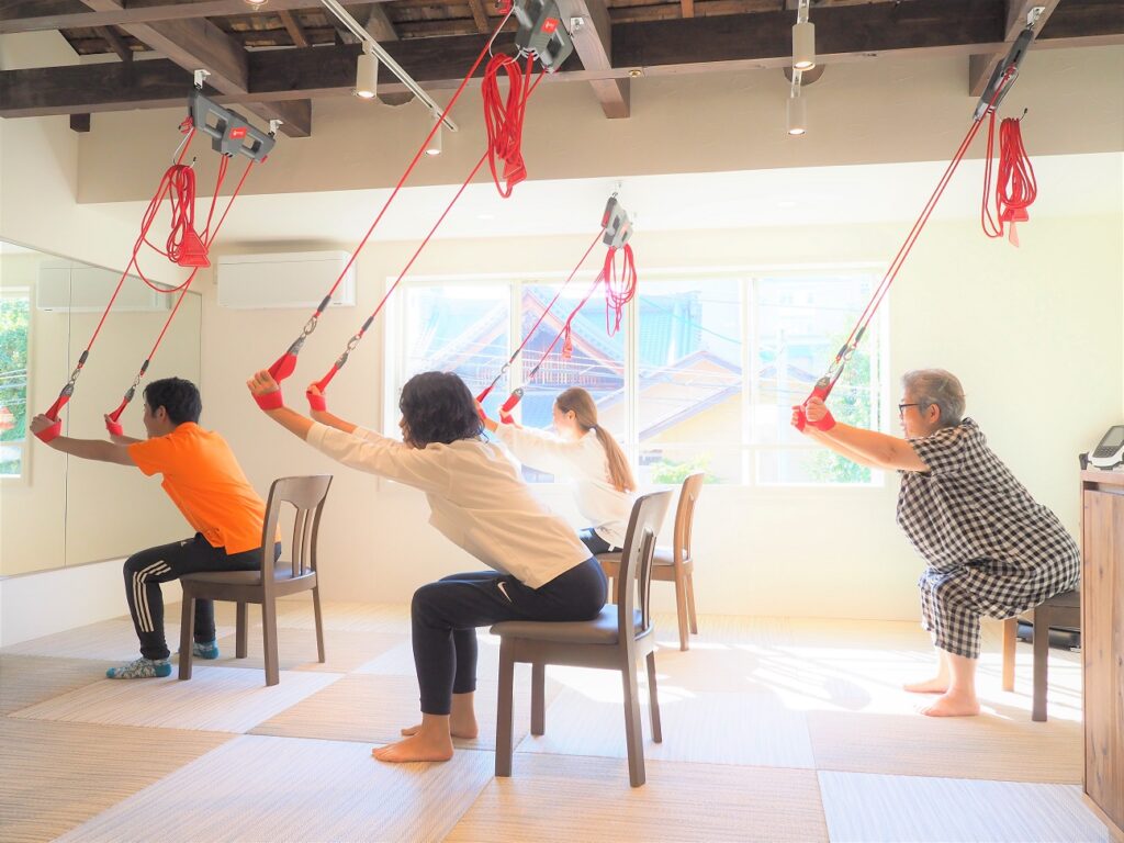 Based on the treatment at Tahara Acupuncture and Moxibustion Osteopathic Clinic (1st floor) and your medical history, 2nd SPACE45 (2nd floor) will create a customized training menu for each individual.